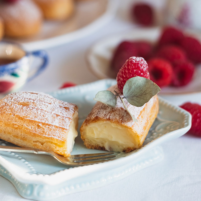 · 50 g de beurre. · 2 grammes de sucre en poudre. · 1 g de sel. · 100 grammes d'eau. · Farine à faible gluten 63 grammes. · 3 œufs (environ 50 g chacun). · Matériau de remplissage de crème. · 250 grammes de crème légère. · 15 grammes de suga en poudre. | Étape 1: Versez 100 g d'eau et 50 g de beurre dans une casserole profonde, ajoutez 2 g de sucre et 1 g de sel. Étape 2: Après l'ébullition pendant 30 secondes, baissez le feu et versez 63 g de farine à faible résistance pré-collée en même temps. Immédiatement après avoir versé, utilisez un batteur d'oeufs manuel pour remuer rapidement à une pâte chaude jusqu'à ce qu'il y ait du matériau coagulé sur le mur du pot. Éteignez le feu et arrêtez de remuer. Étape 3: Lorsque la pâte est chaude, ajoutez trois œufs en trois lots séparés, en remuant soigneusement à chaque fois. Étape 4: Placez la pâte dans un sac de décoration et serrez-la dans une plaque à pâtisserie doublée de graisse. Étape 5: Préchauffez le four et placez la casserole au milieu ou supérieur du four à 190-200 ℃ pendant 20-25 minutes. Étape 6: Retirez immédiatement les bouffées grillées, laissez refroidir et serrez la garniture à la crème, pendant que nous attendons que les Eclairs refroidissent, nous faisons la garniture à la crème. Pour fouetter la crème, vous devez ajouter 15 g de sucre glace à 250 g de crème légère. Étape 7: Mettez la crème fouettée dans un sac de décoration. La pointe de décoration fait un petit trou au fond des bouffées pour presser la crème fouettée. |